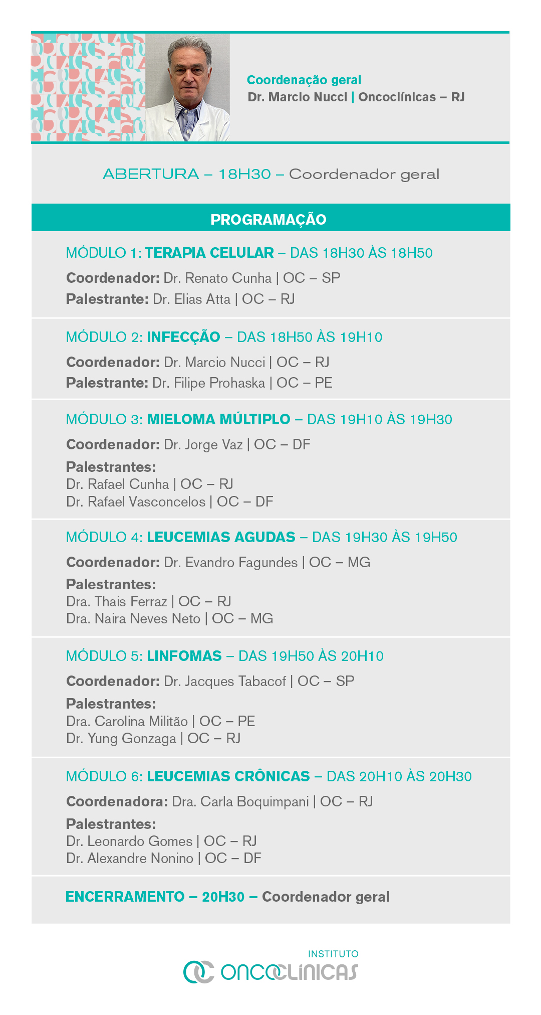 Líder Nacional, Infecção em Câncer e Terapia Celular, Grupo Oncoclinicas Professor Titular, Hematologia, Universidade Federal do Rio de Janeiro